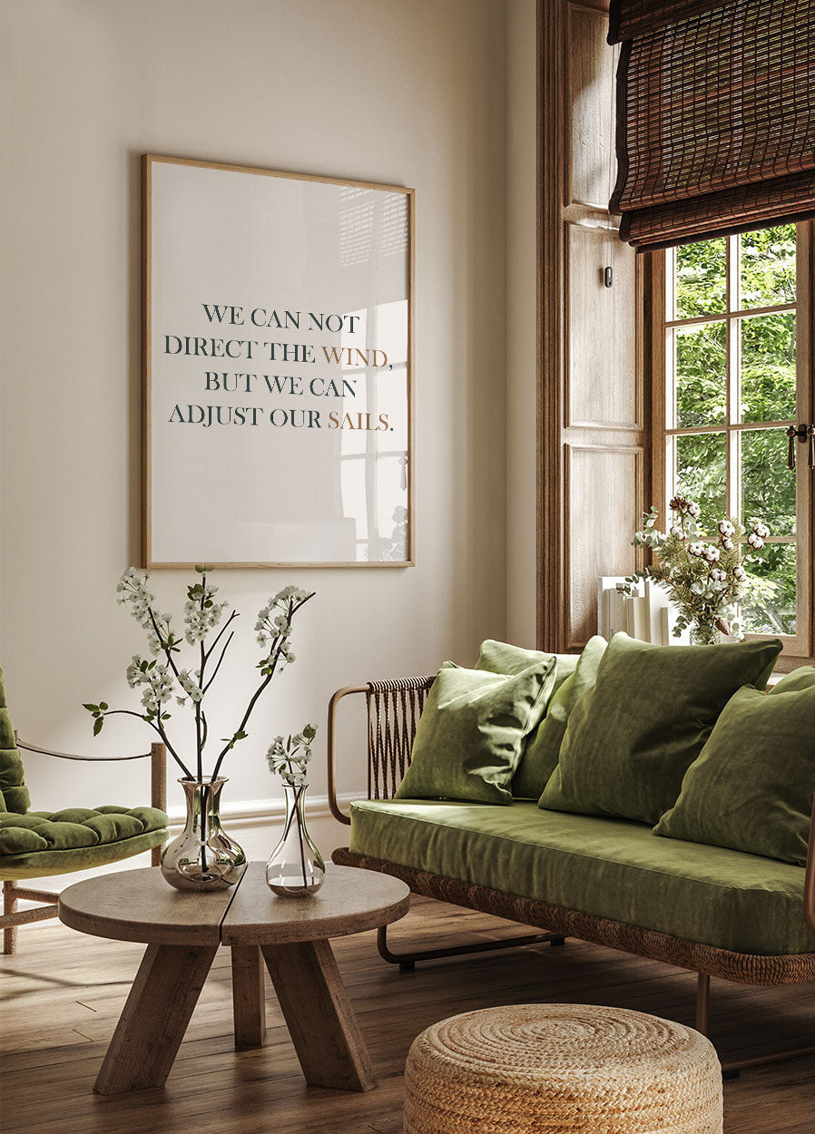 Ein elegantes und inspirierendes Poster mit dem Text „Adjust our sails“. Perfekt, um jedem Raum Motivation und eine positive Stimmung zu verleihen, sei es zu Hause oder im Büro.