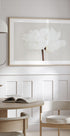Eine weiße Pfingstrose entfaltet ihre seidigen Blütenblätter vor einem sanften grauen Hintergrund, auf dem zarte Rosatöne und feine grüne Striche für Ruhe und Poesie sorgen. Das schlichte Stillleben verleiht dem Raum zeitlose Eleganz und nordischen Minimalismus – perfekt als ruhiger Mittelpunkt im Wohnzimmer, Schlafzimmer oder in kreativen Ecken. Eine dezente Hommage an die Schönheit der Natur.