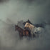 Eine dramatische, malerische Darstellung einer Herde Wildpferde, die durch Staub und Nebel bricht. Die Bewegung vibriert in der Luft, während sich die dunklen Silhouetten zu einem kraftvollen, poetischen Motiv versammeln. Die verlorenen Pferde von Hüseyin Taşkin bringt eine rohe, zeitlose Energie und ein Gefühl der Freiheit ins Zuhause. Perfekt für Räume mit von der Natur inspirierter Ruhe.