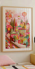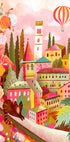 Poster „Italienisches Dorf mit Katze an der Wand“.