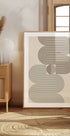 Ein modernes geometrisches Kunstwerk mit ineinandergreifenden Bögen in Erdbraun und Salbeigrün, wobei ein zentraler Kreis für Ausgewogenheit und Harmonie sorgt. Das klare Liniendesign und die gedämpfte Farbpalette schaffen eine ruhige, strukturierte Atmosphäre – perfekt für japanische, skandinavische oder minimalistische Innenräume.