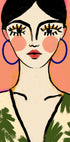 Ein lebendiges und stilvolles Modeporträt-Poster einer Frau mit kräftigen Wimpern, großen Ohrringen und eleganten Farben. Der pfirsichfarbene Hintergrund und die malerischen Texturen verleihen ihm einen modernen künstlerischen Ausdruck und machen ihn zu einem Blickfang in modernen Innenräumen.