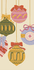 Ornamente von Nikita Jariwala fangen den Charme von Weihnachten in einer Retro-inspirierten Illustration ein: Bunte Kugeln und Schleifen tanzen an Schnüren, wie glitzernde Erinnerungen an den Winter der Kindheit. Legendäre Formen und klare Linien schaffen eine warme, grafische Atmosphäre, die Gemütlichkeit und festliche Freude im Zuhause verbreitet. Perfekt für die gemütlichen Ecken an Weihnachten.