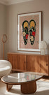 Poster mit schwarzen Schuhen auf rosa Fliesen