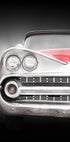 Eine beeindruckende Vorderansicht des Dodge Coronet von 1959, einer Ikone der amerikanischen Automobilgeschichte. Das Kunstwerk hebt die glänzenden Chromdetails, die Doppelscheinwerfer und die auffällige rote Motorhaube des Wagens hervor, die das goldene Zeitalter amerikanischer Oldtimer symbolisieren. Ein perfektes nostalgisches Stück für Autoliebhaber und Vintage-Enthusiasten.