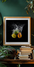 Lebensfreude und Energie spritzen von der Wand in Citrus Splash von Mogyorosi Stefan: Zitronen-, Limetten- und Orangenscheiben brechen durch tiefes Schwarz, gefangen in glitzernden Wasserspritzern. Ein dramatisches, zurückhaltendes Stillleben, das Bewegung und Frische einfängt und der Küche, der Bar oder dem Esszimmer einen kühnen, modernen Mittelpunkt verleiht. Perfekt für Galeriewände.