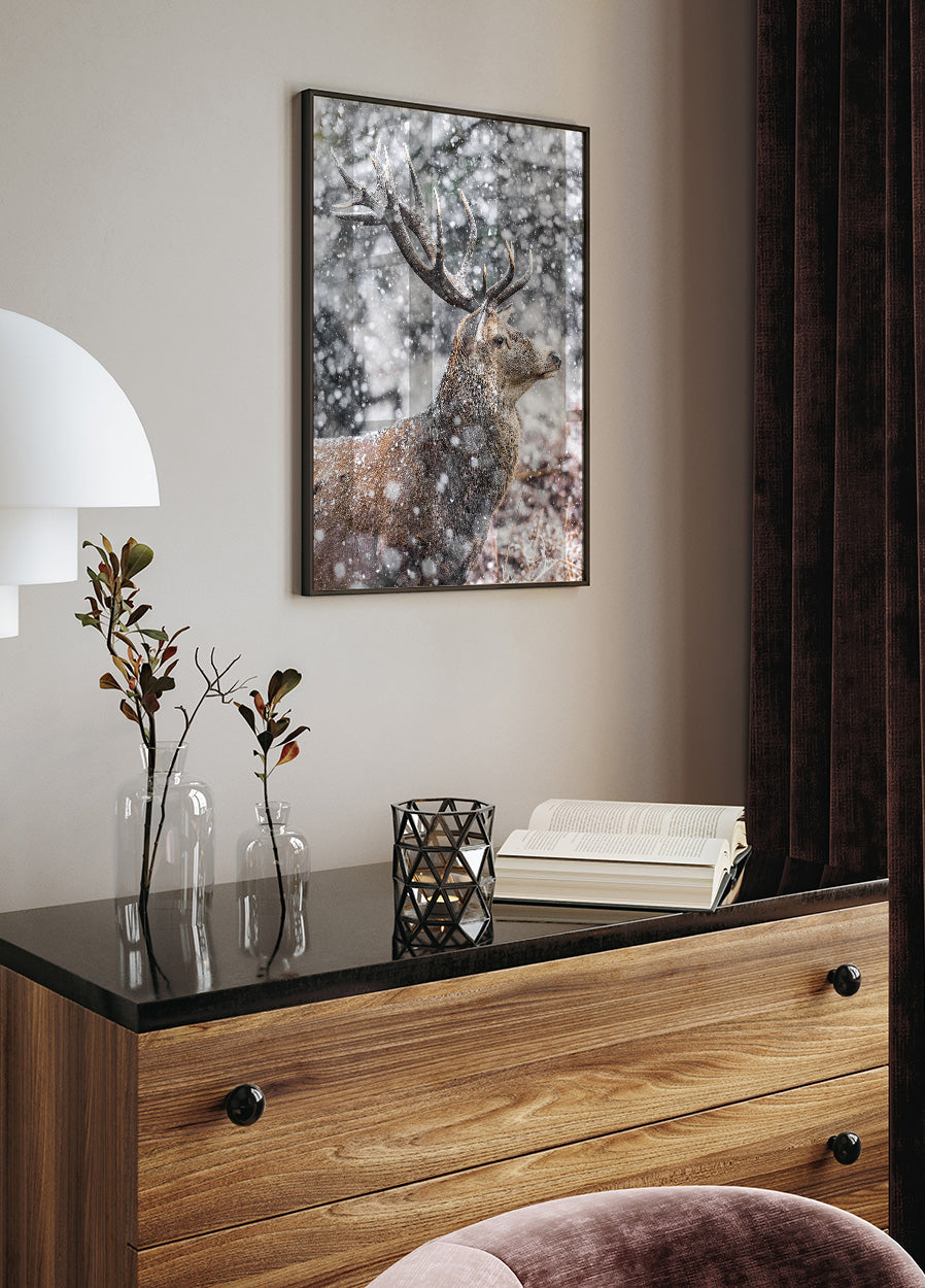 Poster Rothirsch bei Schneefall
