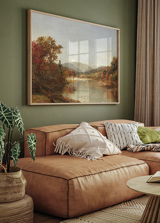 Dieses Gemälde von Jasper F. Cropsey zeigt die Erhabenheit des Mount Washington in New Hampshire im Herbst. Die goldenen und roten Töne der Laubbäume spiegeln sich im ruhigen Fluss, umgeben von sanften Hügeln und in der Ferne von schneebedeckten Bergen. Cropsey, ein Mitglied der Hudson River School, hebt die Harmonie von Licht, Natur und den wechselnden Jahreszeiten mit großer Detailgenauigkeit und lebendigen Farben hervor und fängt die majestätische Schönheit der amerikanischen Landschaft ein.