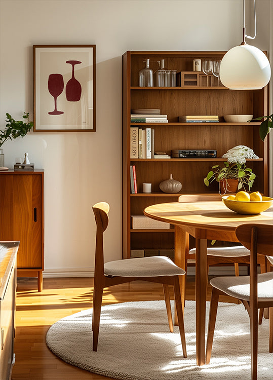 Ein Hoch auf die Atmosphäre! Wine Time von Tara Royle vereint modernistische Formen und Retro-Charme in einer warmen Palette aus Burgund und Orange. Ein stilisiertes Stillleben mit Weinflasche, Glas und Blumenvase erweckt die Bar oder Küchenwand zum Leben, während schlichte Linien und kräftige Flächen einen grafischen, zeitlosen Blickfang schaffen. Perfekt für Weinliebhaber mit Sinn für Kunst.