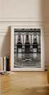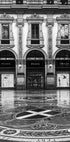 Ein raffiniertes Schwarz-Weiß-Foto des Prada-Stores in der Galleria Vittorio Emanuele II in Mailand, eingerahmt von kunstvoller Architektur und dem ikonischen Mosaikboden. Dieser Druck vereint Mode und Geschichte und drückt italienische Eleganz und zeitlosen Stil aus – perfekt für Innenräume, die von Kultur, Luxus und Design inspiriert sind.