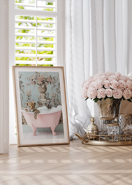 Leopard's Pink Bubble Bath von Niky Rahner Premiumpapier mit mattierter Oberfläche und elegantem Erscheinungsbild. Die matte Oberfläche reduziert Blendungen und sorgt für ein raffiniertes, zeitloses Aussehen. Robust und langlebig für den Langzeitgebrauch, ideal sowohl für den professionellen Einsatz als auch für dekorative Präsentationen.