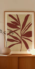 Red Leaf Silhouette von Treechild fängt die Poesie der Natur in einem minimalistischen Ausdruck ein: Eine tiefrote Blattform schwebt auf einem cremigen, strukturierten Hintergrund, auf dem grafische Linien und weiche Kurven Ruhe schaffen. Ein warmer, moderner Akzent, der den Raum zusammenbringt und einen eleganten Mittelpunkt im Wohnzimmer, Schlafzimmer oder Eingangsbereich bildet – schlichte, botanische Schönheit.