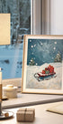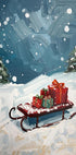 Ein stimmungsvolles Winterposter mit einem Holzschlitten voller schön verpackter Geschenke, leise fallenden Schneeflocken und einer im Hintergrund verschwindenden Tanne. Die Farbpalette ist gedämpft und warm und das Motiv weckt weihnachtliche Ruhe, Vorfreude und Gemütlichkeit – perfekt, um im Wohnzimmer, Kinderzimmer oder Eingangsbereich eine Adventsstimmung zu schaffen.