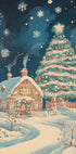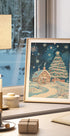 Es entfaltet sich eine stimmungsvolle, schneebedeckte Winterstadt: Kleine Häuser in gedeckten Beigetönen, grüne Tannen und sanfte Schneeflocken sorgen für eine ruhige, nostalgische Weihnachtsstimmung. Die malerische, retro-inspirierte Komposition eignet sich perfekt für das Wohn- oder Kinderzimmer und bringt warme Gemütlichkeit in dunkle Tage und lange Winterabende.