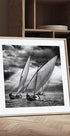 Eine dramatische, monochrome Segelszene: Eine Flotte schlanker Segelboote schneidet durch das Meer, während Sonnenstrahlen durch schwere Wolken brechen und über die Wellen glitzern. Die ruhige Kraft und der Rhythmus der Regatta fangen das Gefühl der Freiheit ein – geschaffen vom Fotografen Angel Villalba. Ein zeitloses Motiv für maritime Häuser und moderne Wände.