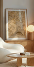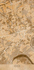 Ein eindrucksvoller, sepiafarbener Stadtplan der Frankfurter Innenstadt von Rosana Laiz Blursbyai. Der Main schlängelt sich durch die Altstadt und das Bankenviertel, während Brücken und Straßennetze ein poetisches Muster bilden. Die Vintage-inspirierte Kartografie hebt die historischen Schichten der Stadt hervor und macht die Karte zu einem zeitlosen Blickfang. Perfekt für Liebhaber von Großstädten und nostalgischem Kartenstil.
