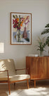 Ein lebendiges Stillleben von Janel Bragg: ein einfaches Einmachglas, gefüllt mit üppigen Blumen in Rosa- und Orangetönen, die vor einem hellen Hintergrund hervorstechen. Die frischen Pinselstriche und kräftigen Farben schaffen eine warme, fröhliche Atmosphäre und verleihen Ihrem Raum einen modernen, botanischen Ausdruck mit poetischem Alltagscharme. Perfekt als farbenfroher Blickfang im Wohnzimmer, in der Küche oder im Eingangsbereich.