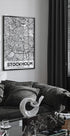 Ein stilvolles und detailliertes Schwarz-Weiß-Kartenposter von Stockholm, das die Straßen, Wasserstraßen und die ikonische Insellandschaft der Stadt elegant hervorhebt. Die feinen Linien und grafischen Muster verleihen dem Poster einen modernen und zeitlosen Look, der sowohl in minimalistische als auch skandinavische Häuser perfekt passt. Ideal für alle, die Stockholm lieben, Erinnerungen an die Stadt haben oder ein schönes geografisches Kunstwerk an der Wand haben möchten.