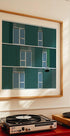 Die Straßenlaterne von Inge Schuster fängt urbanen Minimalismus ein: Ein einzelner Laternenpfahl zeichnet eine scharfe Diagonale über weiße und sanftgraue Fassaden, unterbrochen von einem ruhigen Pinselstrich aus Grün. Klare Linien, großzügiger Negativraum und subtile Schatten schaffen eine ausgewogene, Zen-artige Ruhe in einem modernen Stadtraum. Die Komposition umrahmt die ruhige Poesie der Stadt.