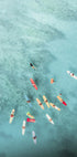 Ein erfrischendes Luftposter, das Surfer zeigt, die auf türkisfarbenem Wasser schwimmen und auf die nächste Welle warten. Dieses Küstenbild bringt Freiheit, Sonne und Sommerstimmung in moderne Häuser – perfekt für Strandliebhaber.