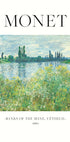 Ein ruhiges impressionistisches Meisterwerk von Claude Monet aus dem Jahr 1880, das die Ufer der Seine bei Vétheuil zeigt. Das Kunstwerk fängt die üppige Vegetation, blühende Wildblumen und das reflektierende Wasser unter einem ruhigen Himmel ein. Ein zeitloses Beispiel für Monets Meisterschaft in Bezug auf Licht, Farbe und Atmosphäre.