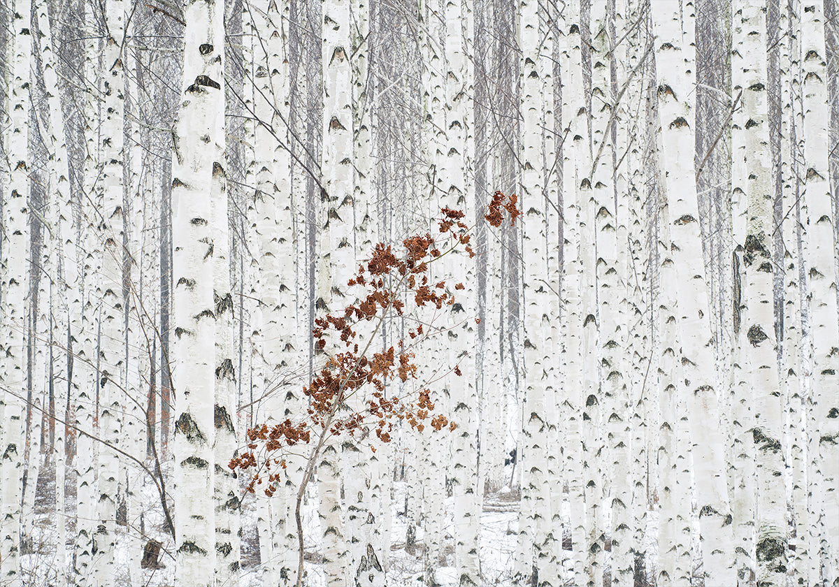 „From White“ von HAN Dong Hee zeigt einen ruhigen Birkenwald, eingehüllt in weißes Licht. Schlanke, helle Stämme stehen in rhythmischen Reihen, während sanfte Schatten und neblige Schichten Tiefe und Ruhe schaffen. Der prägnante, nordisch-minimalistische Ausdruck macht das Motiv ideal, um Licht, Luft und harmonische Balance in das Zuhause zu bringen. Perfekt für eine ruhige Inneneinrichtung.
