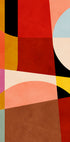 Ein lebhafter Blumenstrauß in einer verspielt gestreiften Vase vor dunklem Hintergrund, mit Mohnblumen und zarten Blumen. Dieses Kunstwerk zeigt moderne Blumenmuster mit satten Farbkontrasten, perfekt als Inspiration für moderne Wohndekorationen.