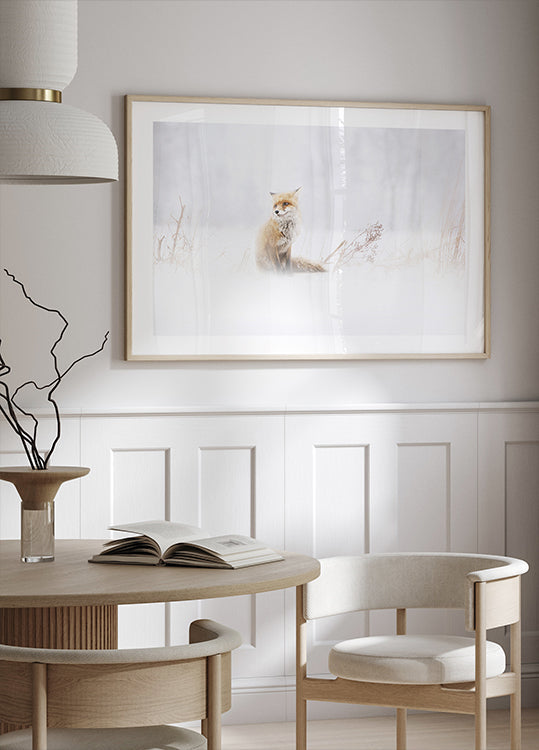 Ein Rotfuchs steht still in einem frostigen Wald, umgeben von flauschigem Schnee und gedämpftem Winterlicht. Die Stimmung ist ruhig und erwartungsvoll – wie ein Atemzug vor dem nächsten Schritt. Waiting... von Doris Reindl fängt die Poesie der Natur ein und bringt den stillen Zauber des Winters in Ihr Zuhause. Perfekt, um das ganze Jahr über eine nordische Atmosphäre und einen poetischen Mittelpunkt zu schaffen.