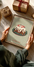 Bringen Sie festliche Stimmung an Ihre Wände mit dieser Illustration eines üppigen Weihnachtskuchens im Vintage-Stil, vollgestopft mit Zuckerguss, Beeren und kleinen Feiertagsdetails. Warme Farben und verspielte Linien erinnern an gemütliche Wintertreffen und verleihen Küchen, Esszimmern oder gemütlichen Ecken einen Hauch nostalgischen Charme. Perfekt für fröhliche Präsentationen.