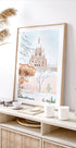 Ein poetischer Winterblick über Paris, wo sich die Sacré-Cœur in gedämpften, kühlen Tönen über schneebedeckte Dächer erhebt. Feine grafische Linien und sanfte Kontraste strahlen frostige Ruhe aus, während Licht und Schatten den Blick auf die Silhouette der Basilika lenken. Kreiert von Petra Lizde – eine stilvolle Hommage an den stillen Zauber der Stadt im Winterdunst.