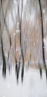 Eine ruhige Winterstimmung entfaltet sich in einer schneebedeckten Landschaft, in der dunkle Baumstämme als grafische Silhouetten vor einem sanften, hellen Himmel stehen. Fein fallender Schnee verstärkt die Stille, während zwischen den Ästen Spuren des Lebens zu spüren sind. Alexander Kiyashko fängt die coole Poesie und zeitlose Ruhe der Saison ein. Eine stille Hommage an die grafische Winterpalette der Natur.