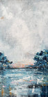 Winter Blue von Helena Ryhle interpretiert die ruhige Natur des Winters in kühlen Blautönen. Handgemalte, impressionistische Striche suggerieren einen fernen Horizont und offene Weiten, in denen Licht und Nebel aufeinandertreffen. Der minimalistische Ausdruck schafft Ruhe, Tiefe und nordische Eleganz, die zum Eintauchen in jeden Raum einlädt. Perfekt als ruhiger Mittelpunkt im Wohn- oder Schlafzimmer.