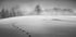Winterlandschaft von Larry Deng APA fängt die poetische Stille des Winters in Schwarzweiß ein. Eine offene, schneebedeckte Landschaft wird durch feine Fußspuren unterbrochen, die zu einer Reihe umrandeter Bäume führen. Minimalistische Formen und sanfte Kontraste schaffen Ruhe, Tiefe und Reflexion – ein optischer Bruch im klaren Licht der Kälte. Der nordische Minimalismus verstärkt die Ruhe des Motivs.