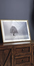 Winterlicht von Nicolas Schumacher fängt einen ruhigen Wintermorgen auf der Schwäbischen Alb ein: Ein einsames Baumdach und eine leere Bank stehen in einer schneebedeckten Landschaft. Die helle, prägnante Ästhetik schafft Ruhe, Luft und Reflexion – perfekt für Räume, die Minimalismus lieben. Eine poetische Erinnerung an die stille Schönheit des Winters.