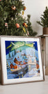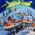 Ein Winterabenteuer von Gordon Bruce: Ein ruhiges, verschneites Dorf im Tanz der Nordlichter. Warmes Licht strömt aus den Häusern, eine Steinbrücke überspannt einen zugefrorenen Bach und die Tannen stehen schwer vor Frost. Malerische Pinselstriche und ein tiefer Nachthimmel sorgen für Ruhe, Nostalgie und Winterzauber im Zuhause. Perfekt für Weihnachtsstimmung und ruhige Winterabende.
