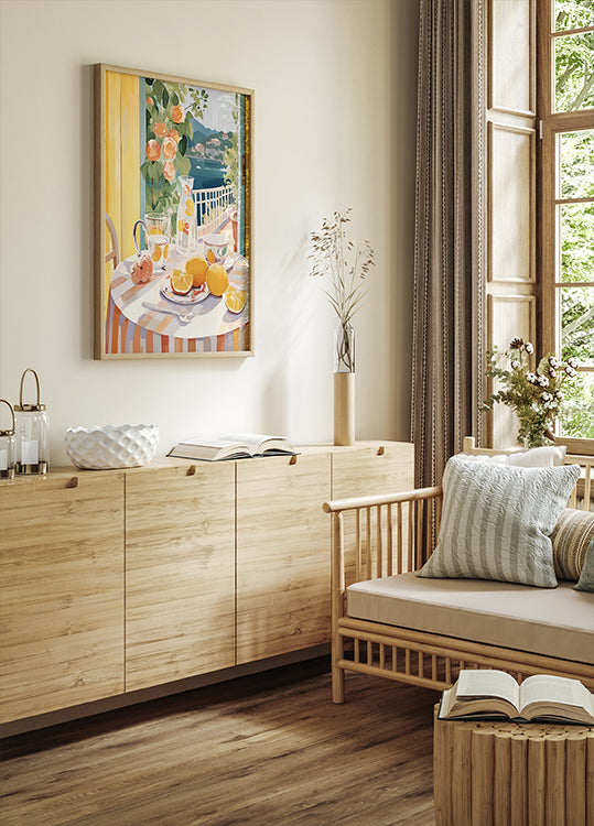 Zitronenmorgen auf der Terrasse, mediterraner Sommer Poster