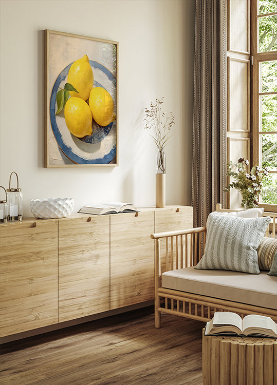 Zitronenstillleben, Teller mit blauem Rand Poster